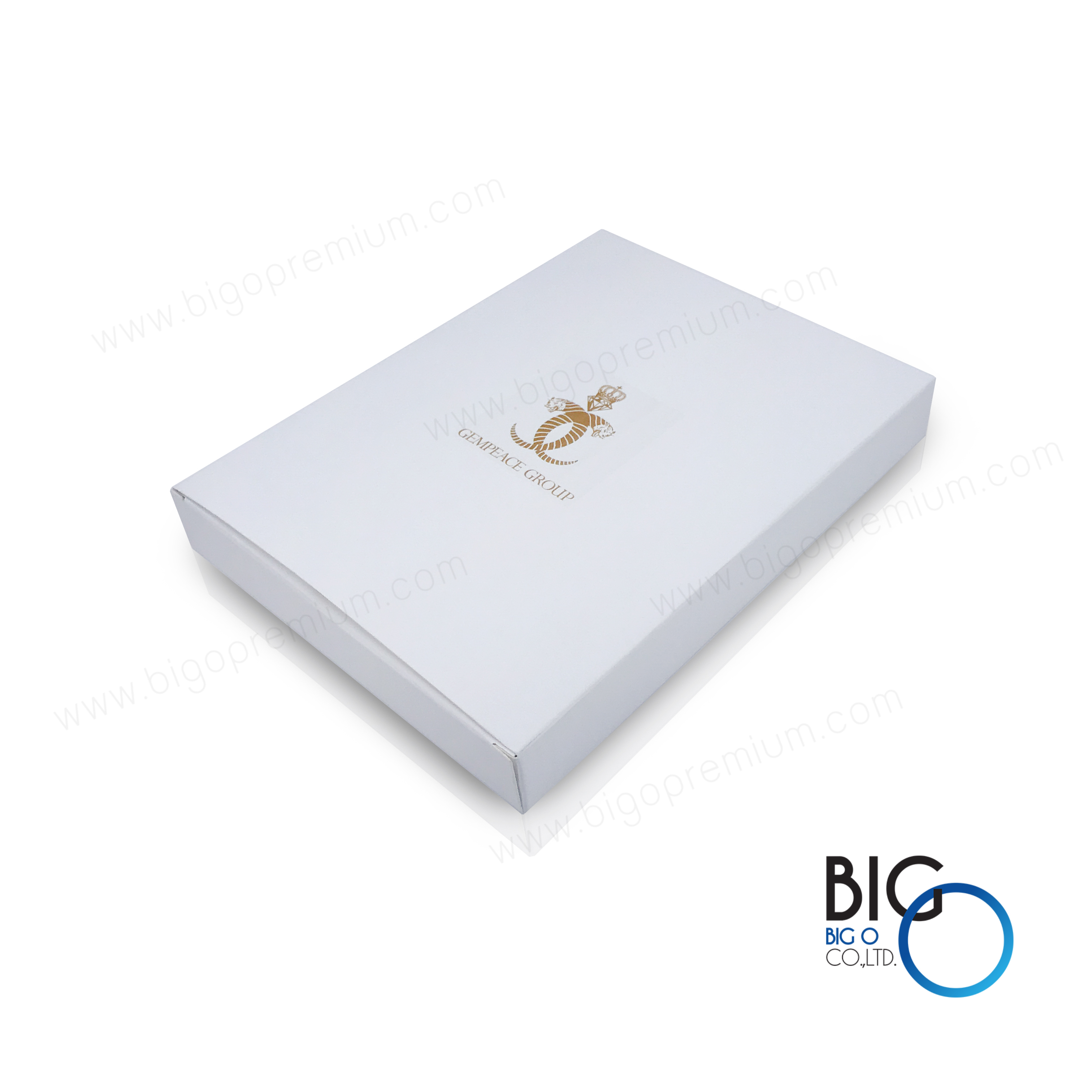 สกรีน 1 สี 1 จุด (ปกสมุด) และ ทำโลโก้ 1 สี 1 จุด (หน้ากล่อง)
